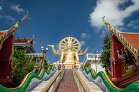 Ko Samui, Thailand’s second largest island, lies in the Gulf of Thailand off the east coast of the Kra Isthmus. It's known for its palm-fringed beaches, coconut groves and dense, mountainous rainforest, plus luxury resorts and posh spas. The landmark 12m-tall golden Big Buddha statue at Wat Phra Yai Temple is located on a tiny island connected to Ko Samui by a causeway.